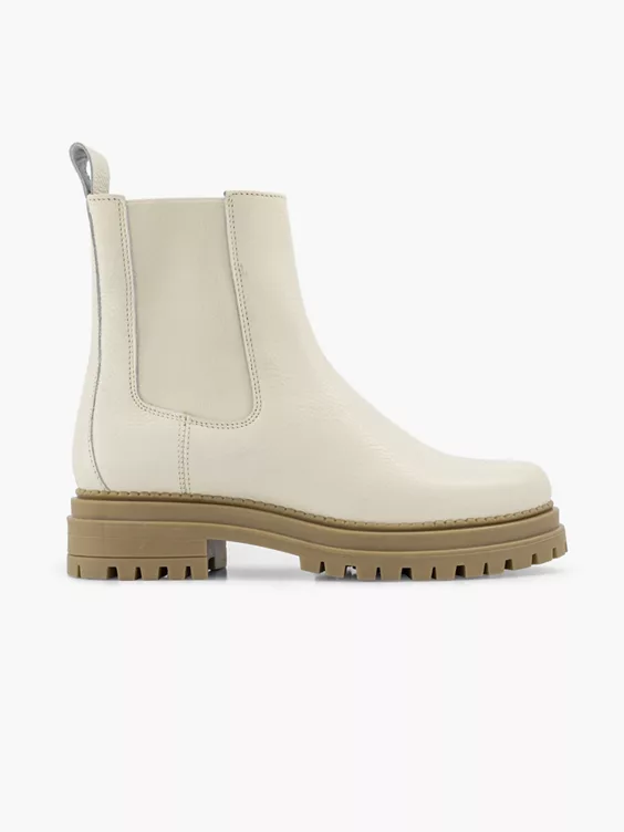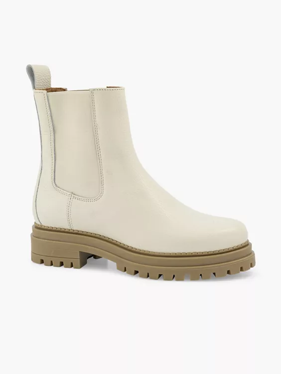 Een stoere off-white damesschoen mag niet ontbreken aan jouw schoenenkast dit seizoen. Met deze trendy boot van het populaire merk OXMOX style je iedere outfit af met pit. De lederen enkellaars voor dames heeft een comfortabele fit en stevige rubberzool.