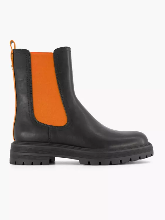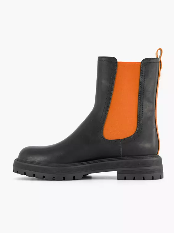 Zwarte Chelsea Boot Oranje Elastiek