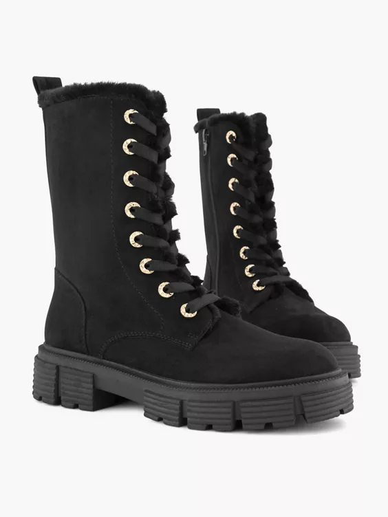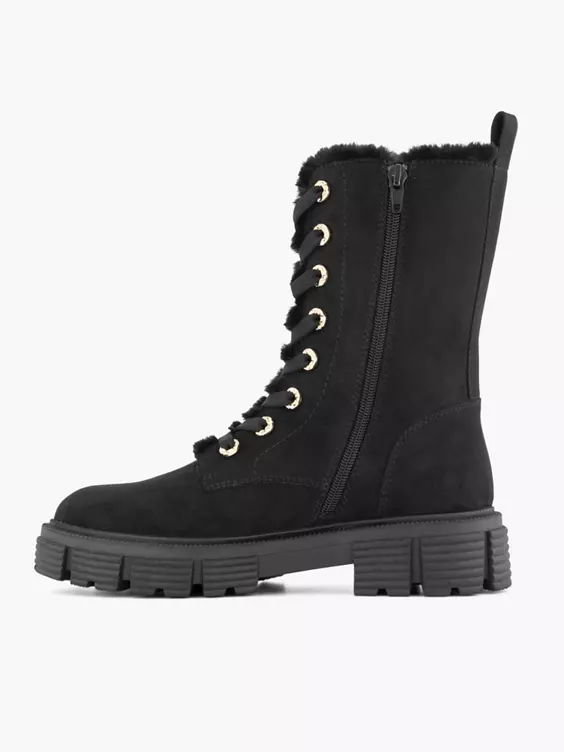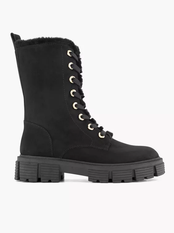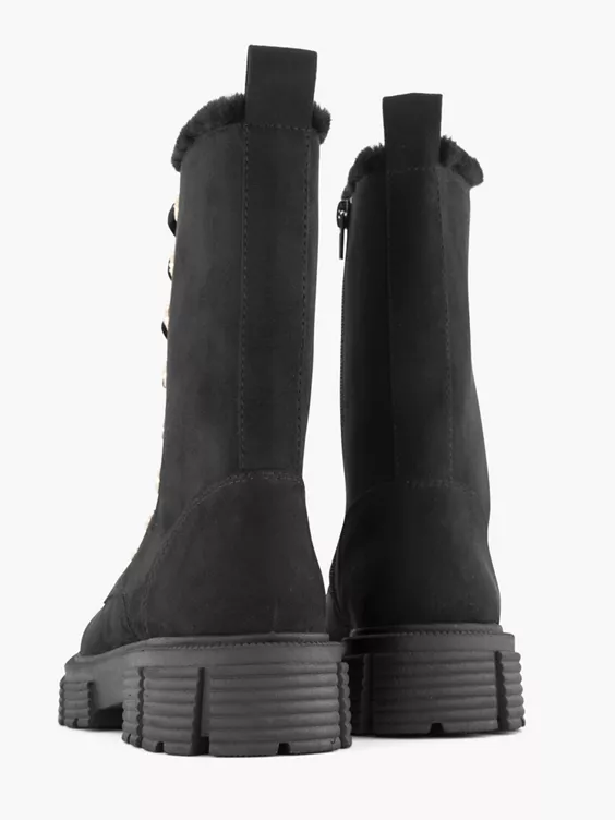 Zwarte Chunky Veterboot Gevoerd