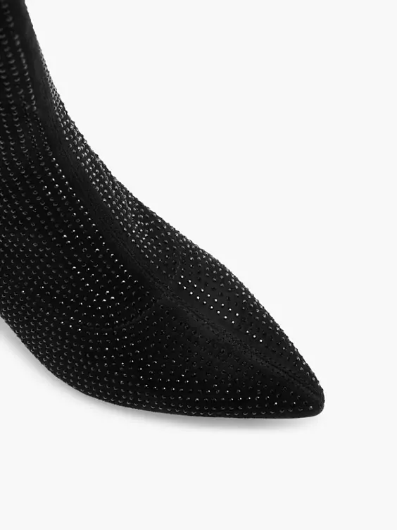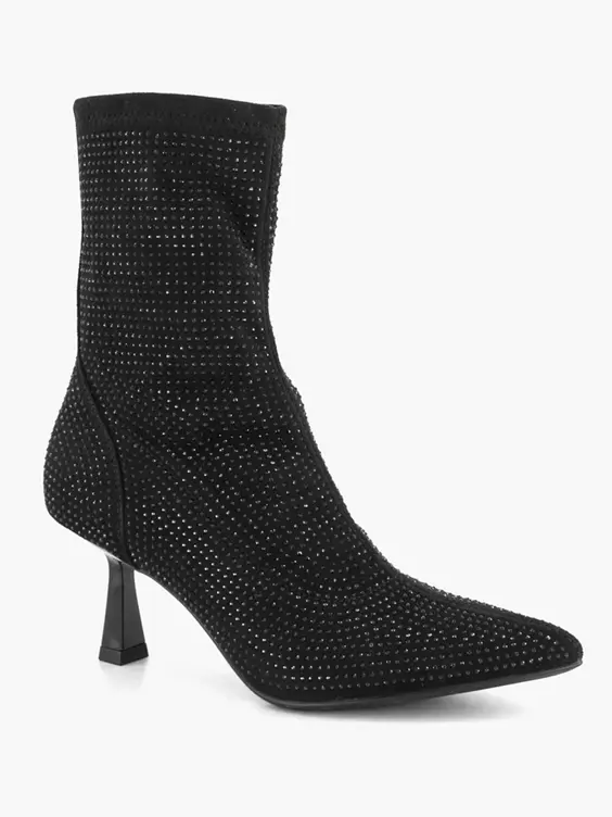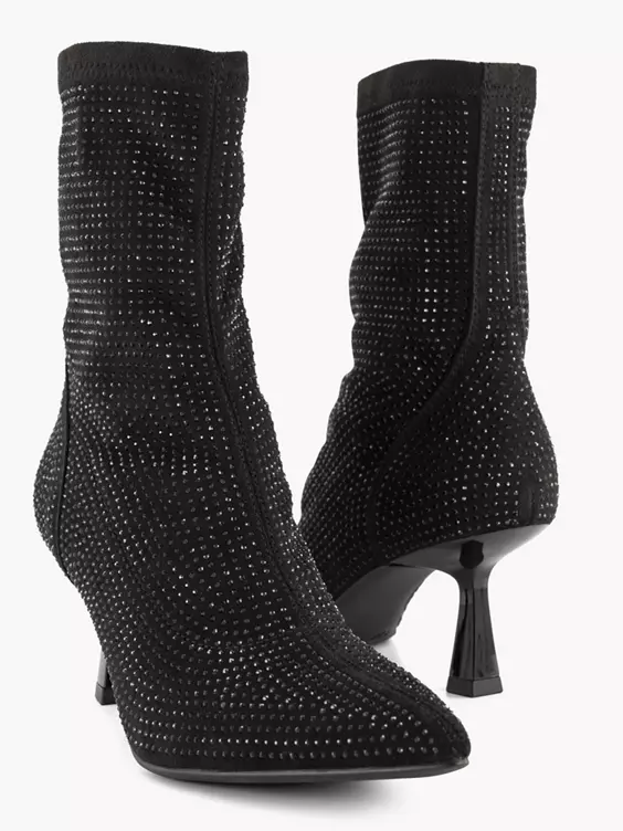 Zwarte Enkellaars Queenie Hak Glitters