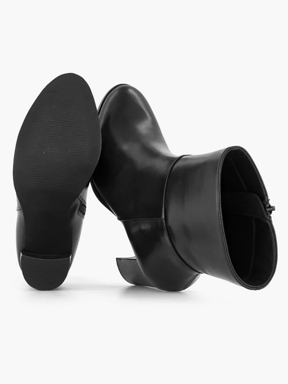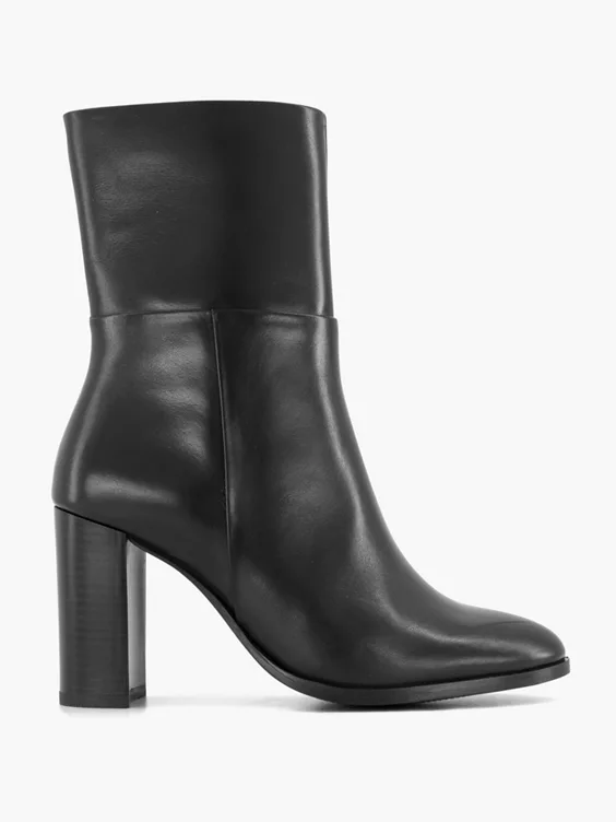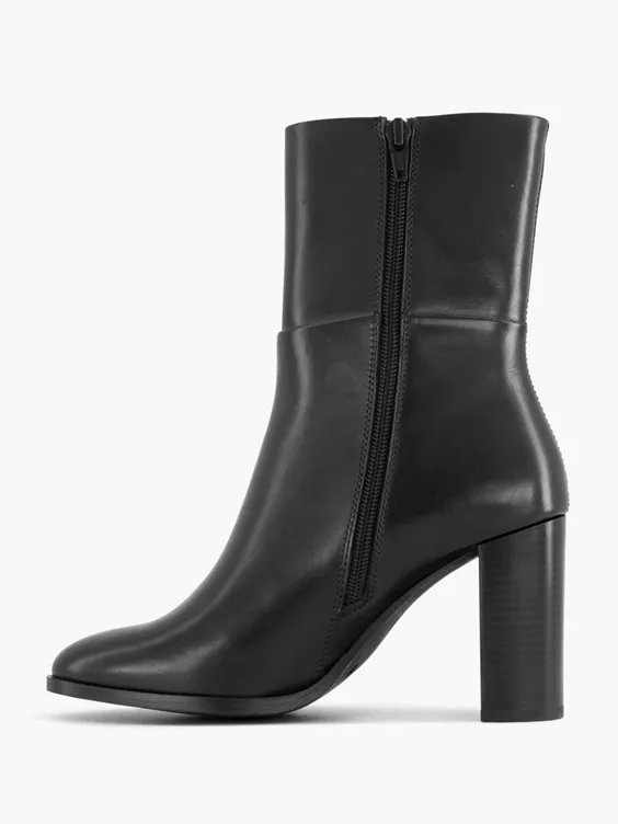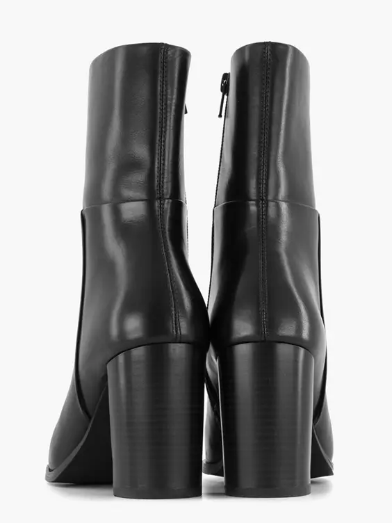 Zwarte Leren Enkellaars Hoge Hak